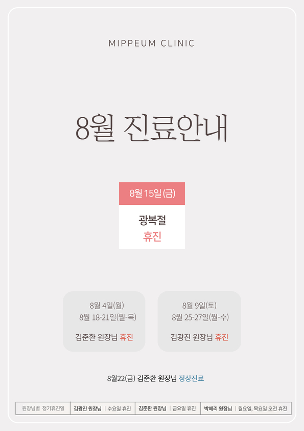8월 4일(월), 8월 18-21일(월-목) 김준환 원장님 휴진